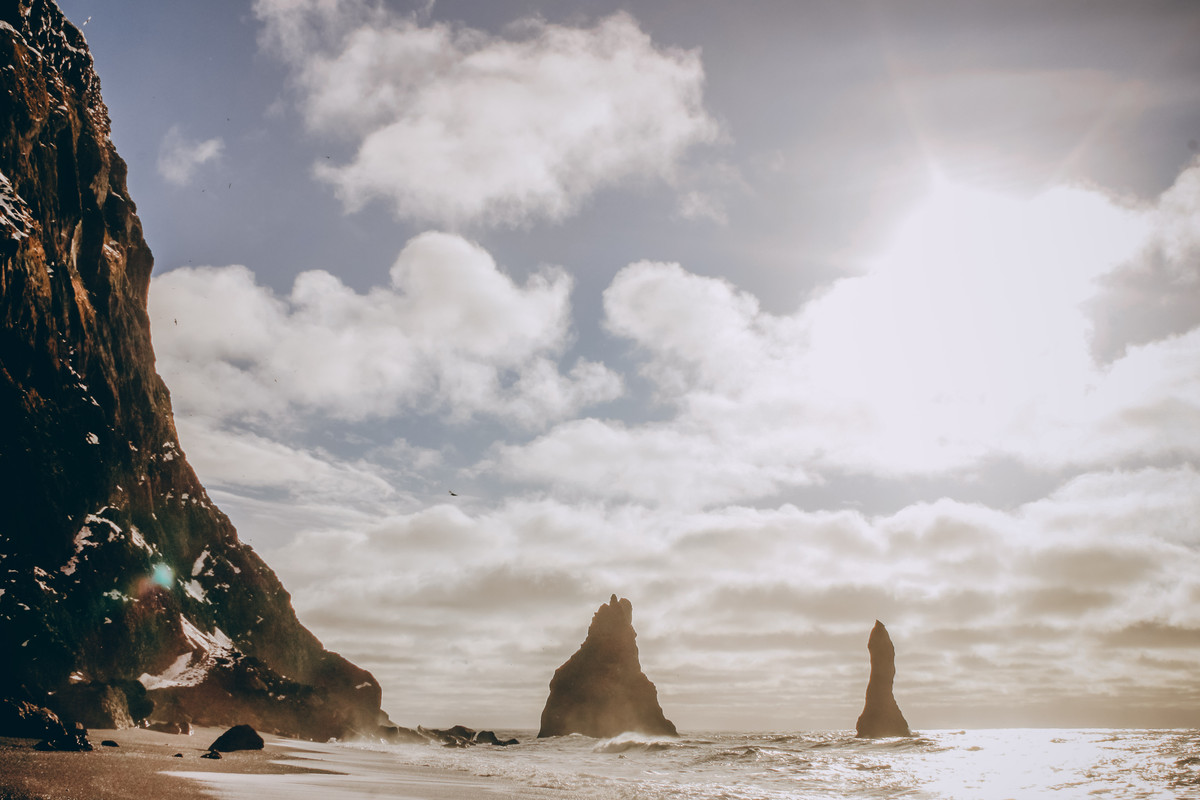 Reynisfjara Beach - A famosa praia de areia preta com o clássico paredão de basalto.